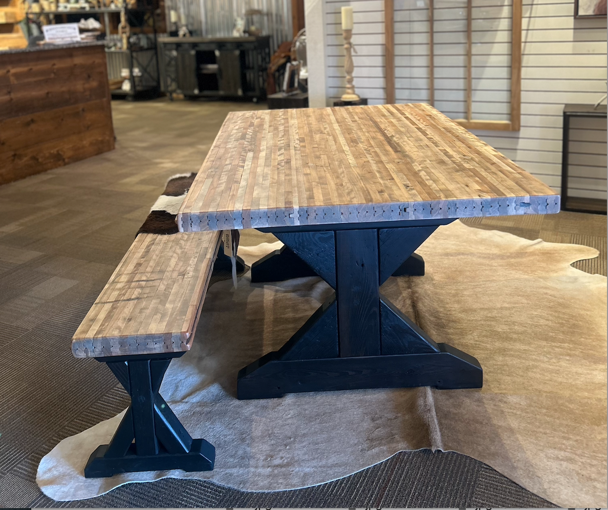 PLEASE NOTE: The table shown in the photo is the exact piece you will receive. Handcrafted in Stockyards City, OK, this is a one-of-one piece of furniture.